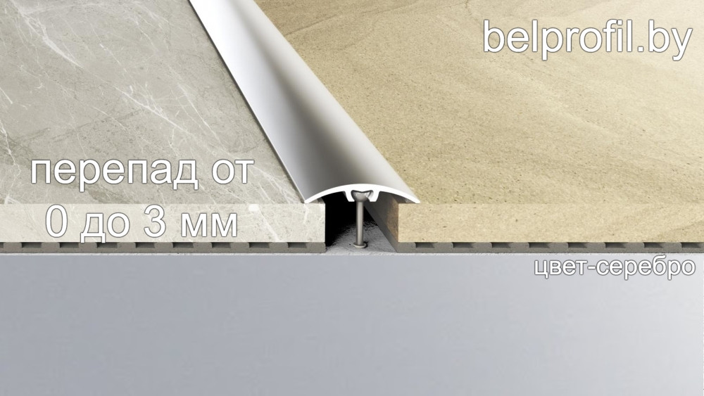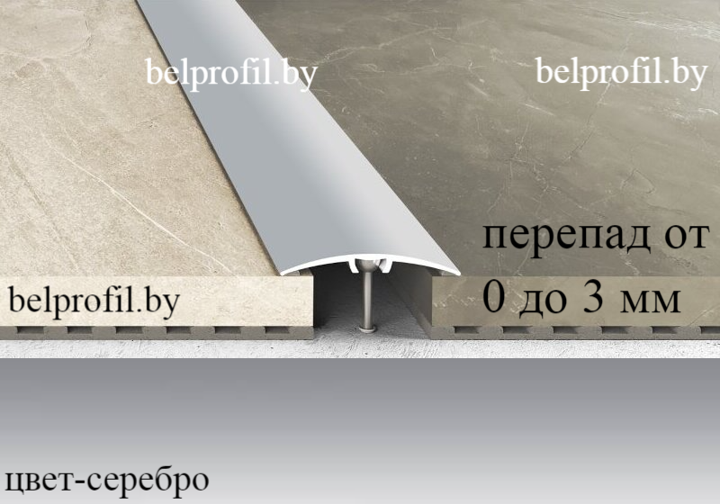 Алюминиевый профиль шириной 30 мм, имеет продольную жесткость. Применяется для соединения стыков между плиткой, ламинатом, паркетом, ковровых покрытий имеющих перепад от 0 мм до 3 мм.