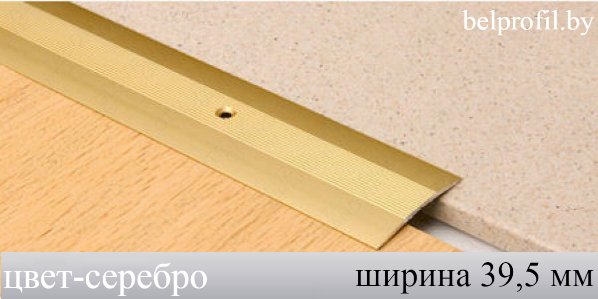 Алюминиевый профиль шириной 39,5 мм, имеет продольную жесткость. Применяется для соединения стыков между плиткой, ламинатом, паркетом, ковровых покрытий.