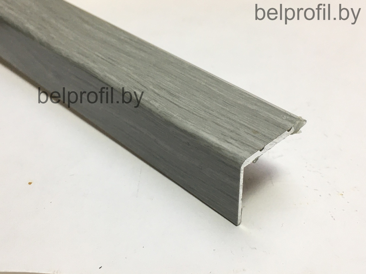 Алюминиевый угловой порог с декоративными насечками, ламинированный, самоклеящийся, предназначенный для установки на границе напольных покрытий, имеющих разный уровень стыка или для отделки ступеней лестниц.