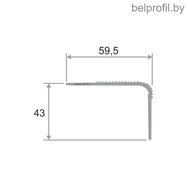 Алюминиевый угловой порог с декоративными насечками, с отверстиями для крепления представляет собой профиль, предназначенный для установки на границе напольных покрытий, имеющих разный уровень стыка, так же подходит на край ступеней, лестниц.