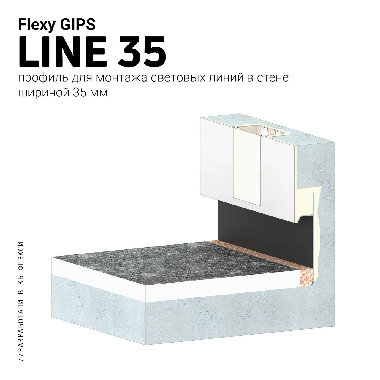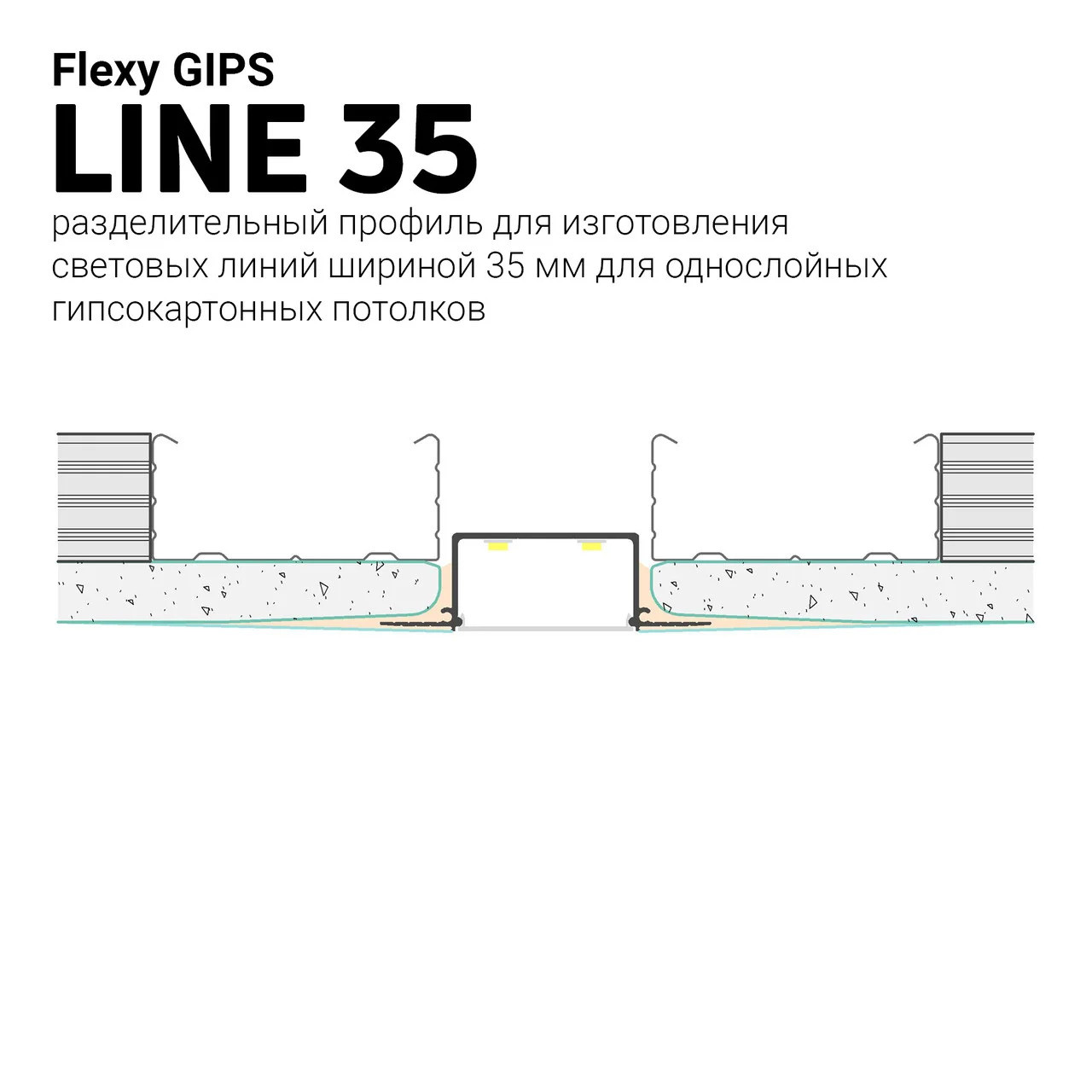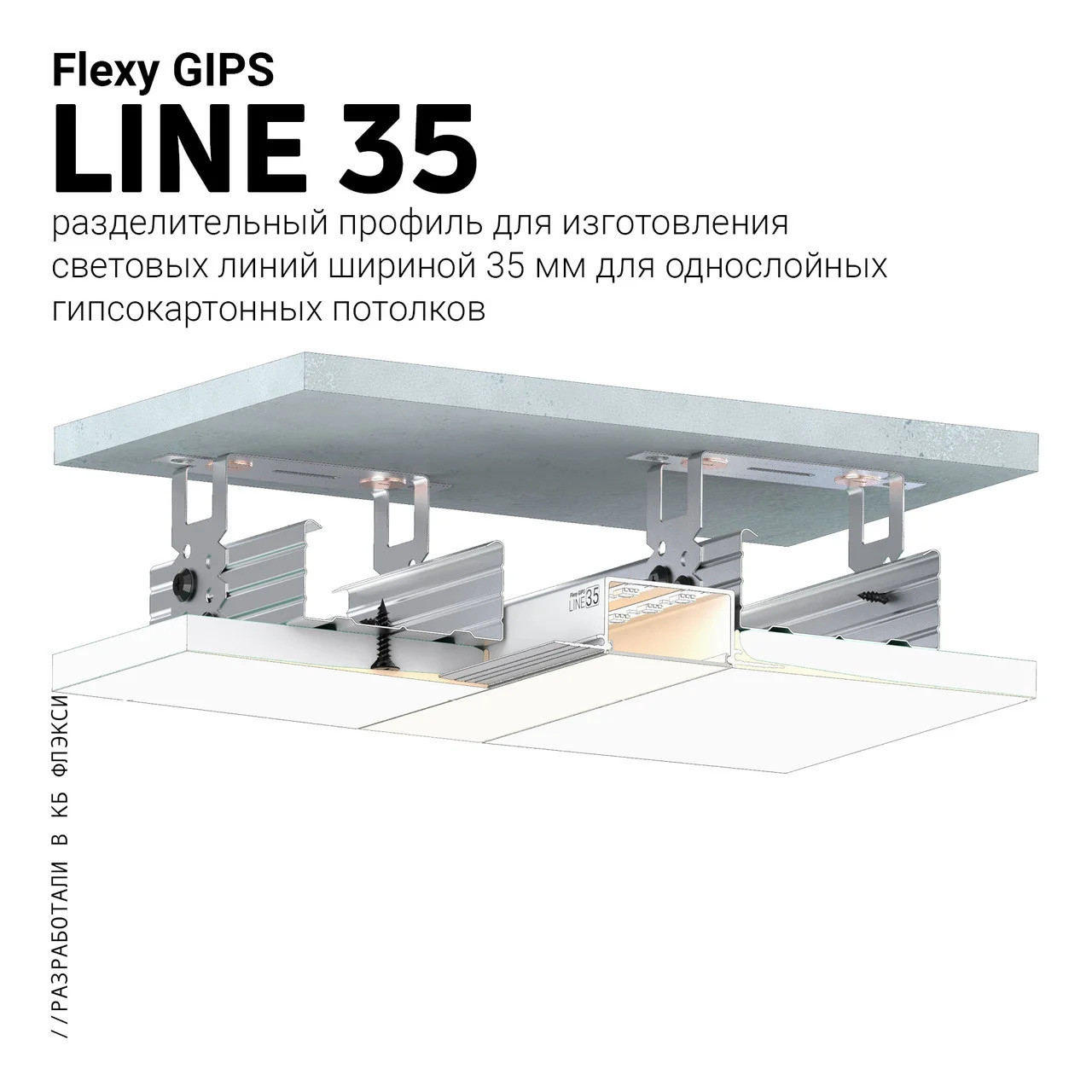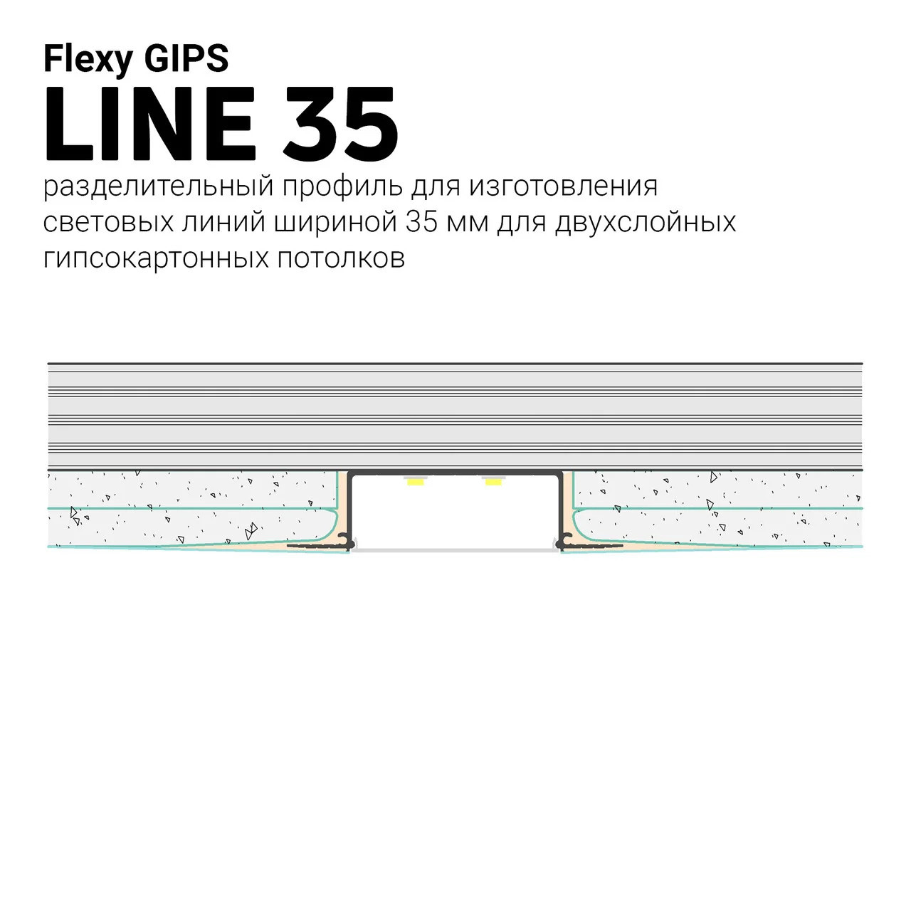 Разделительный профиль Belprofil line 35 для изготовления световых линий шириной 35 мм. Светодиодная лента клеится на полку внутри световой камеры профиля и закрывается светорассеивающим экраном. Профиль может использоваться для установки однофазных трековых систем освещения.
