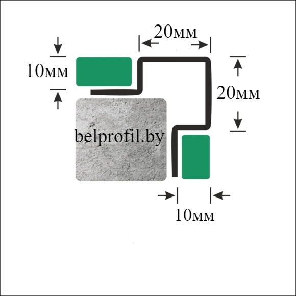 Профиль предназначен для использования как при отделке вертикальных внешних углов стен, колон, так и горизонтальных углов( края бордюров, парапетов)