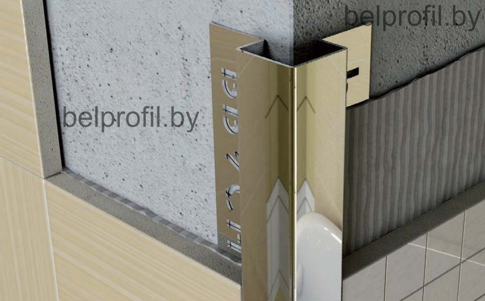 При отделке плитки данным видом профиля, на лицевой поверхности стыка формируется декоративный прямой угол.