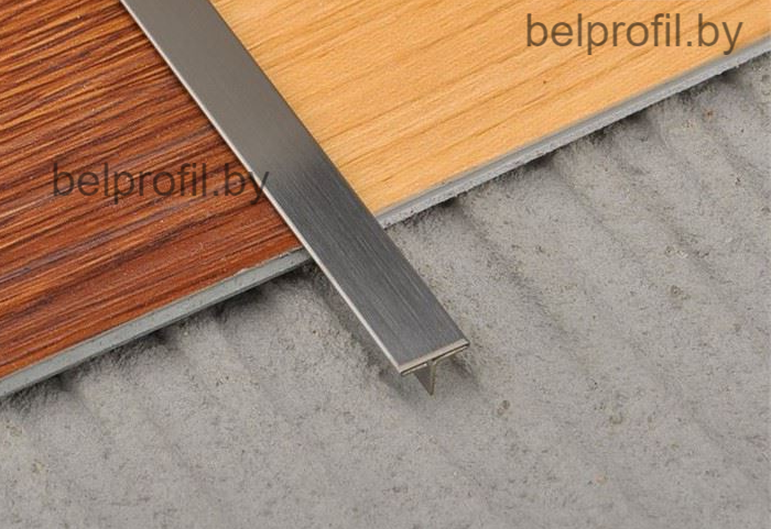 Показать оптовые ценыТ-образный профиль (порог) служит для отделки прямых или криволинейных стыков соединений.